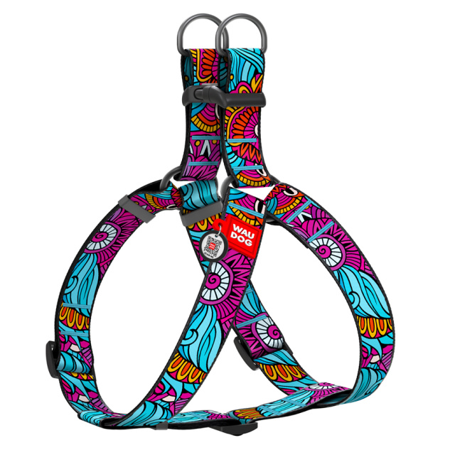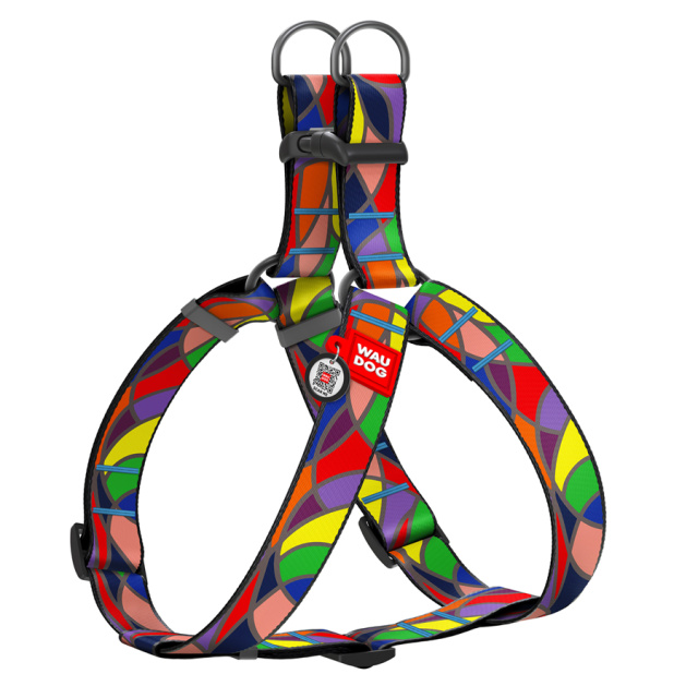 Шлея для собак WAUDOG Nylon з QR паспортом, малюнок «Вітраж», пластиковий фастекс, XL, Ш 35 мм, А=В 70-100 см