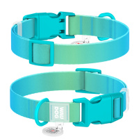 Нашийник для собак з нейлону WAUDOG Nylon Recycled c QR паспортом, градієнт, пластиковий фастекс, L, Ш 25 мм, Дов 33-49 см, блакитний
