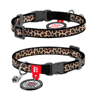 Нашийник для котів нейлоновий WAUDOG Nylon з QR паспортом, малюнок «Леопард», пластиковий фастекс, XS, Ш 10 мм, Дов 20-30 см