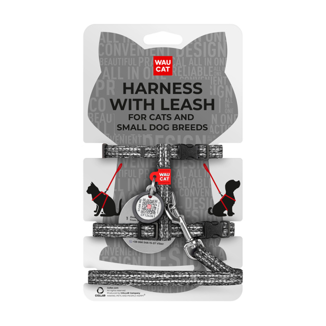 Шлея з повідцем WAUDOG Re-cotton з QR паспортом, з відновленої бавовни, світловідбиваюча, пластиковий фастекс, XS, Ш 10 мм, Д 122 см, В 25-40 см, С, Львів