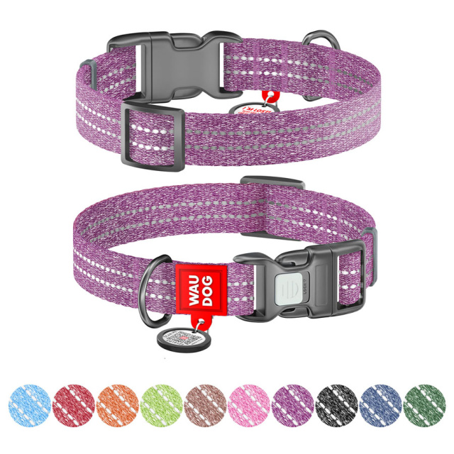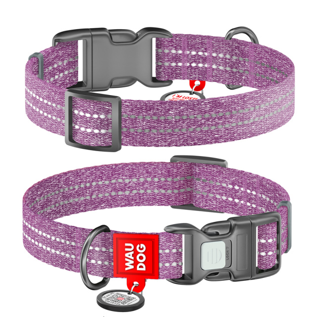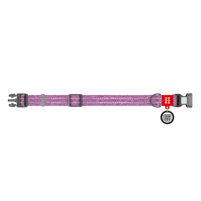 Нашийник для собак із відновленої бавовни WAUDOG Re-cotton з QR паспортом, світловідбиваючий, пластиковий фастекс, Ш 25 мм, Дов 33-49 см фіолетовий, Львів