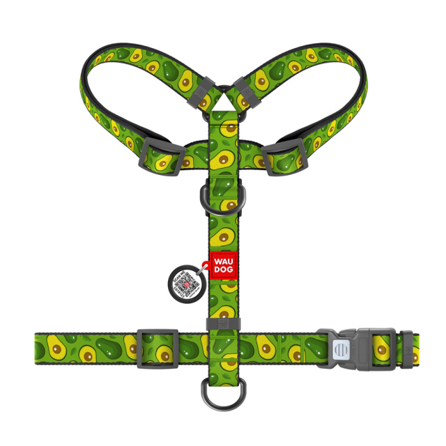 Шлея для собак анатомічна H-подібна WAUDOG Nylon з QR-паспортом, малюнок «Авокадо», пластиковий фастекс, М, Ш 20 мм, А 42-68, В 50-80, Львів
