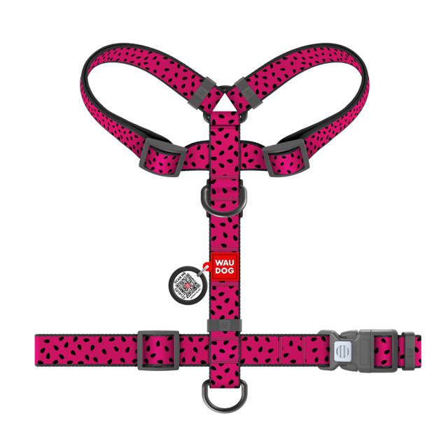 Шлея для собак анатомічна H-подібна WAUDOG Nylon з QR-паспортом, малюнок «Кавун», пластиковий фастекс, М, Ш 20 мм, А 42-68, В 50-80, Львів