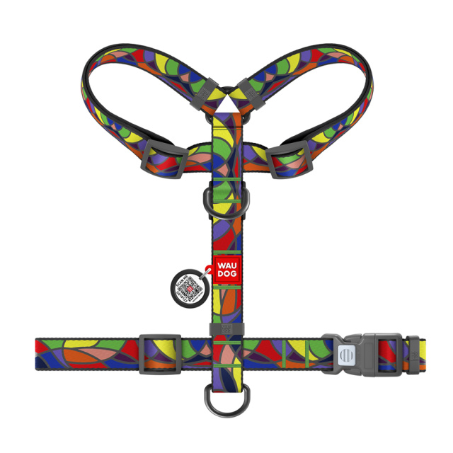 Шлея для собак анатомічна H-подібна WAUDOG Nylon з QR-паспортом, малюнок «Вітраж», пластиковий фастекс, М, Ш 20 мм, А 42-68, В 50-80, Львів
