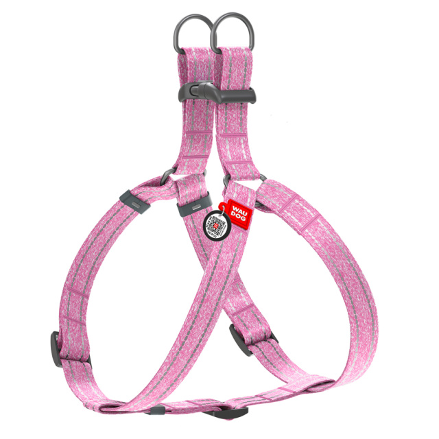 Шлея з відновленої бавовни WAUDOG Re-cotton з QR паспортом, світловідбиваюча, пластиковий фастекс, L, Ш 25 мм, Д 60-85 см рожевий, Львів