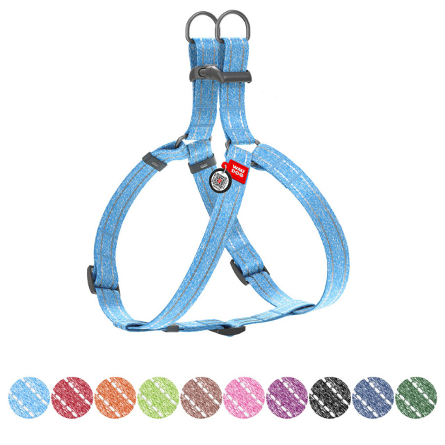 Шлея з відновленої бавовни WAUDOG Re-cotton з QR паспортом, світловідбиваюча, пластиковий фастекс, L, Ш 25 мм, Д 60-85 см блакитний, Львів