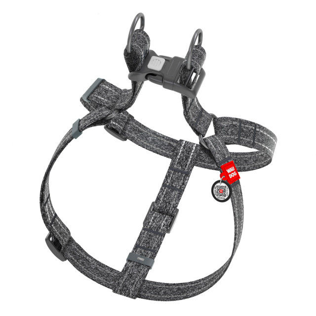 Шлея з відновленої бавовни WAUDOG Re-cotton з QR паспортом, світловідбиваюча, пластиковий фастекс, S, Ш 15 мм, Д 40-55 см сірий, Львів