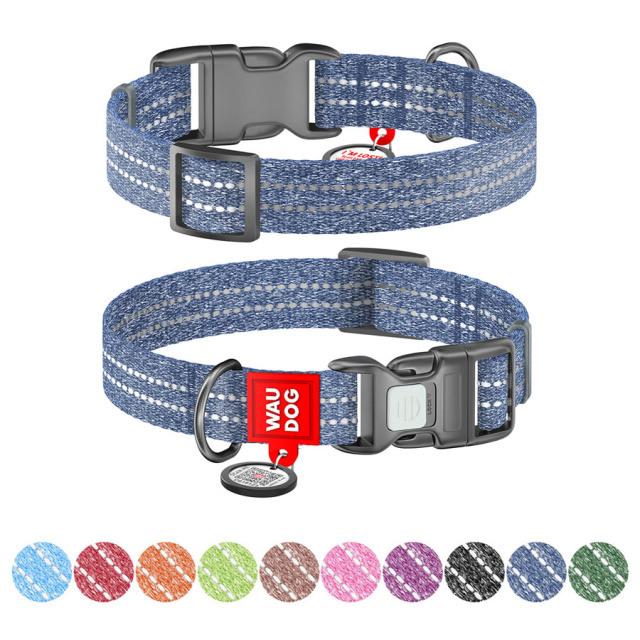 Нашийник для собак із відновленої бавовни WAUDOG Re-cotton з QR паспортом, світловідбиваючий, пластиковий фастекс, Ш 25 мм, Дов 37-58 см синій, Львів