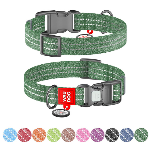 Нашийник для собак із відновленої бавовни WAUDOG Re-cotton з QR паспортом, світловідбиваючий, пластиковий фастекс, Ш 25 мм, Дов 37-58 см зелений, Львів