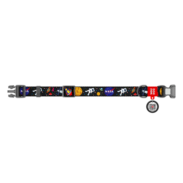 Нашийник для собак нейлоновий WAUDOG Nylon з QR паспортом, малюнок «NASA», пластиковий фастекс, Ш 25 мм, Дов 33-49 см, Львів