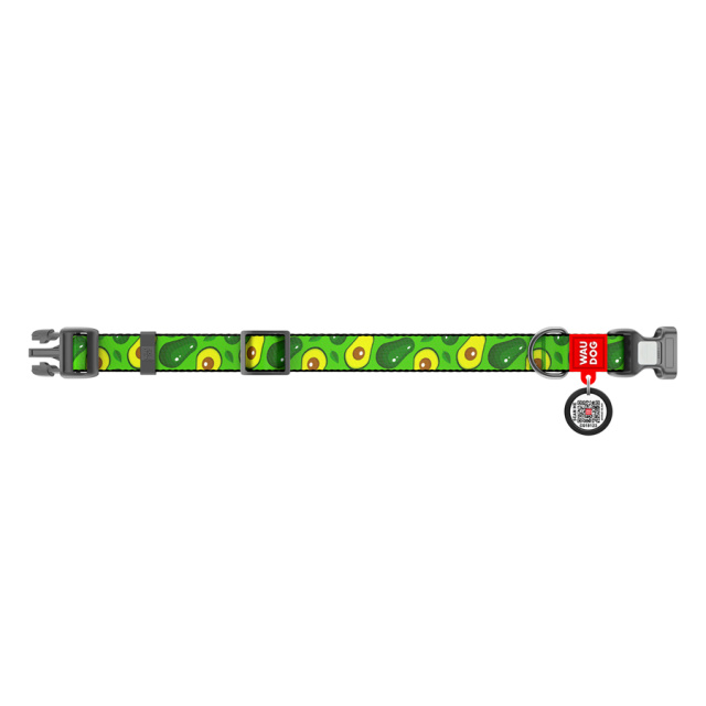Нашийник для собак нейлоновий WAUDOG Nylon з QR паспортом, малюнок «Авокадо», пластиковий фастекс, Ш 25 мм, Дов 33-49 см, Львів