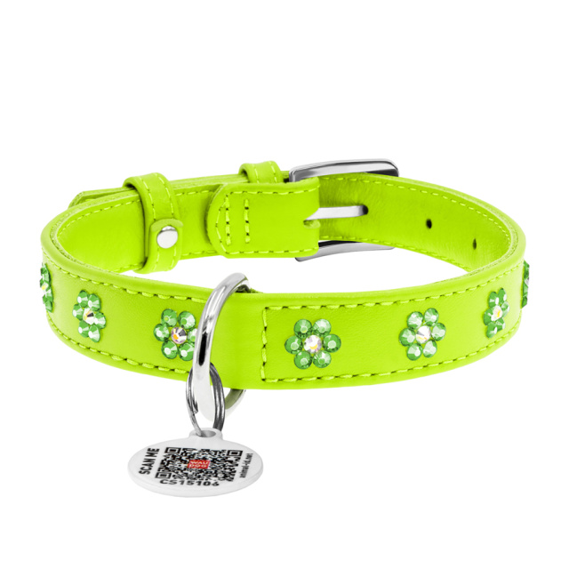 Нашийник для собак шкіряний WAUDOG Glamour з QR паспортом, з клейовими стразами «Квіти», Ш 20 мм, Дов 30-39 см, Львів