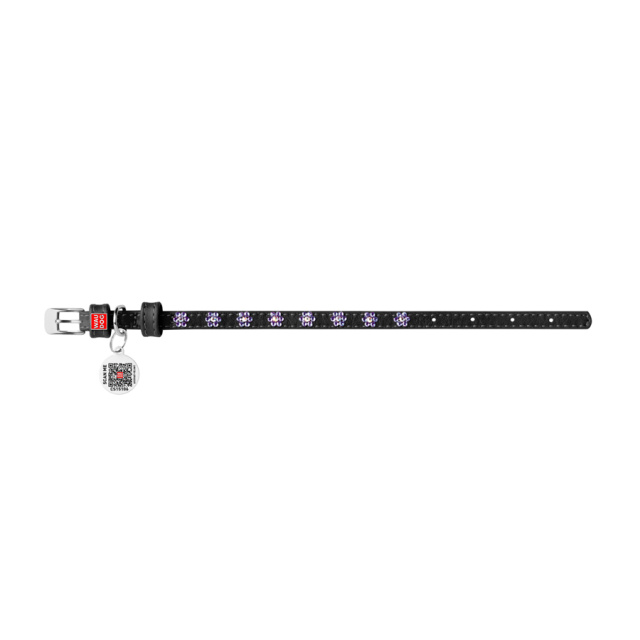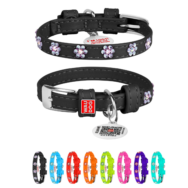 Нашийник для собак шкіряний WAUDOG Glamour з QR паспортом, з клейовими стразами «Квіти», Ш 12 мм, Дов 21-29 см чорний, Львів