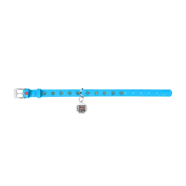 Нашийник для собак шкіряний WAUDOG Glamour з QR паспортом, з клейовими стразами «Квіти», Ш 15 мм, Дов 27-36 см блакитний, Львів