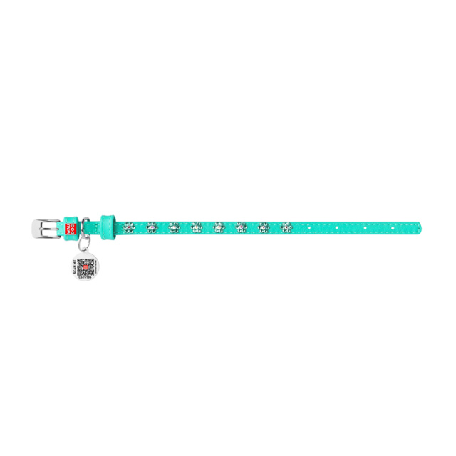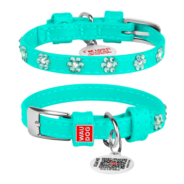 Нашийник для собак шкіряний WAUDOG Glamour з QR паспортом, з клейовими стразами «Квіти», Ш 9 мм, Дов 19-25 см ментоловий, Львів