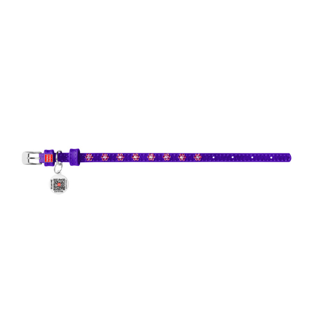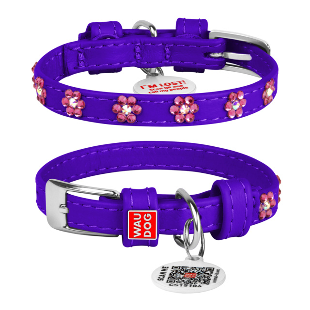 Нашийник для собак шкіряний WAUDOG Glamour з QR паспортом, з клейовими стразами «Квіти», Ш 9 мм, Дов 19-25 см фіолетовий, Львів
