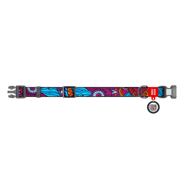 Нашийник для собак нейлоновий WAUDOG Nylon з QR паспортом, малюнок «Літо», пластиковий фастекс, Ш 25 мм, Дов 37-58 см, Львів