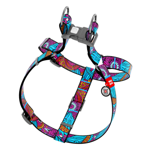 Шлея для собак WAUDOG Nylon з QR паспортом, малюнок «Літо», пластиковий фастекс, Ш 20 мм, Дов 50-75 см, Львів