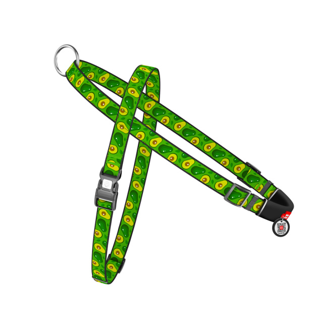 Шлея для собак швидкознімна WAUDOG Nylon з QR паспортом, малюнок «Авокадо», пластиковий фастекс, Ш 25 мм, А 60-80 см, В 70-100 см, Львів