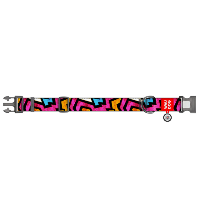 Нашийник для собак нейлоновий WAUDOG Nylon з QR паспортом, малюнок «Графіті», пластиковий фастекс, XXL, Ш 35 мм, Дов 46-70 см, Львів