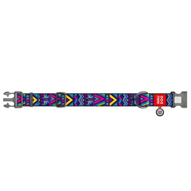 Нашийник для собак нейлоновий WAUDOG Nylon з QR паспортом, малюнок «Інді», пластиковий фастекс, XXL, Ш 35 мм, Дов 46-70 см, Львів