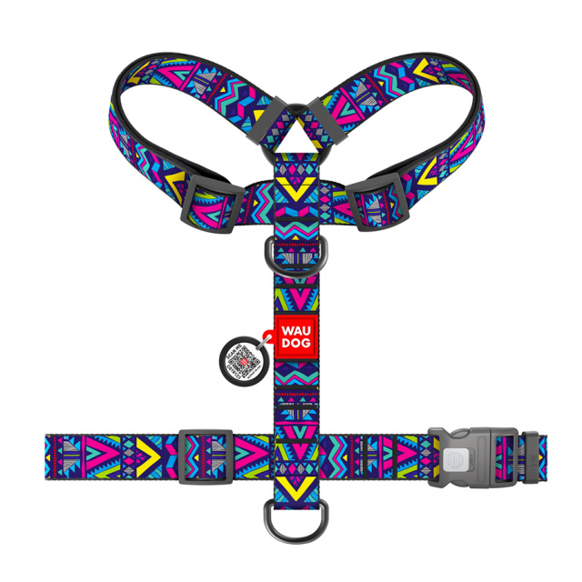 Шлея для собак анатомічна H-подібна WAUDOG Nylon з QR-паспортом, малюнок «Інді», пластиковий фастекс, XL, Ш 35 мм, А 56-95 см, В 68-110 см, Львів