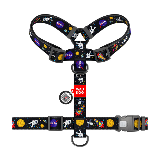Шлея для собак анатомічна H-подібна WAUDOG Nylon з QR-паспортом, малюнок «NASA», пластиковий фастекс, XL, Ш 35 мм, А 56-95 см, В 68-110 см, Львів
