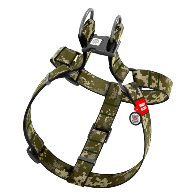 Шлея для собак WAUDOG Nylon з QR паспортом, малюнок «Мілітарі», пластиковий фастекс, XL, Ш 35 мм, А=В 70-100 см, Львів