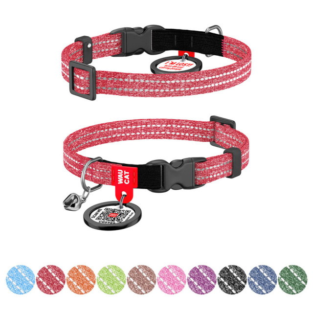 Нашийники WAUDOG Re-cotton для котів не залишать байдужими власників цих домашніх тварин. Стрічка з відновленої бавовни — виготовлена з екологічної сировини повторного технологічного циклу. Матеріал м'який на дотик та водночас дуже міцний, а вплетена світловідбивна нитка гарантує безпеку під час прогулянок у темний час доби. Нашийник має вставку-резинку, бубонець для відлякування птахів і мишей, та «розумний» QR-адресник, що робить його не лише зручним, але й практичним та надійним.