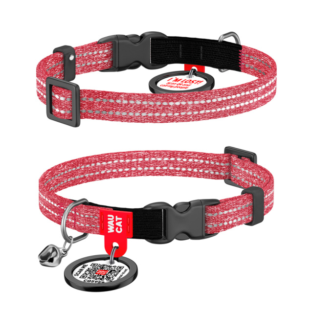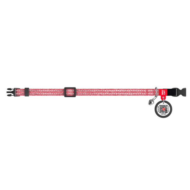 Нашийник для котів з відновленої бавовни WAUCAT Re-cotton з QR паспортом, світловідбиваючий, пластиковий фастекс, XS, Ш 10 мм, Дов 20-30 см, червоний, Львів