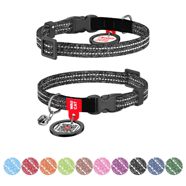Нашийники WAUDOG Re-cotton для котів не залишать байдужими власників цих домашніх тварин. Стрічка з відновленої бавовни — виготовлена з екологічної сировини повторного технологічного циклу. Матеріал м'який на дотик та водночас дуже міцний, а вплетена світловідбивна нитка гарантує безпеку під час прогулянок у темний час доби. Нашийник має вставку-резинку, бубонець для відлякування птахів і мишей, та «розумний» QR-адресник, що робить його не лише зручним, але й практичним та надійним.