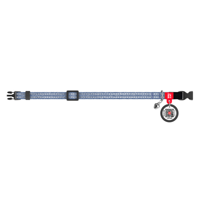 Нашийник для котів з відновленої бавовни WAUCAT Re-cotton з QR паспортом, світловідбиваючий, пластиковий фастекс, XS, Ш 10 мм, Дов 20-30 см, синій, Львів