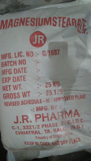 Магний стеариновокислый (стеарат магния)- бесцветные кристаллы, не растворяется в воде.