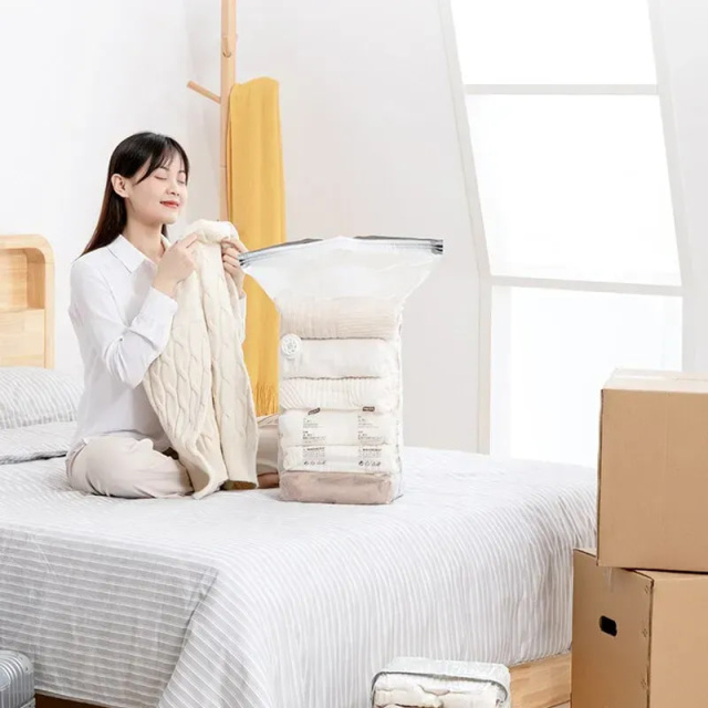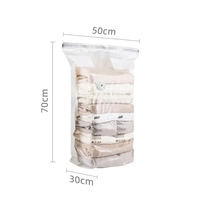 Ідеальний для тих, хто цінує порядок та компактність: зберігайте сезонний одяг, ковдри, подушки або інші об’ємні предмети, не займаючи зайвого місця. Вакуумний мішок — ваш помічник для дому та подорожей.