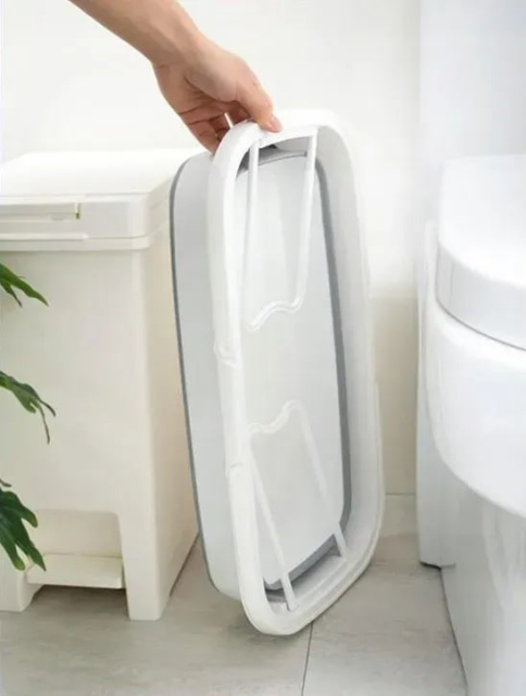 Завдяки складній конструкції відро легко зменшується у висоту та займає мінімум місця при зберіганні. У складеному вигляді його зручно тримати під ліжком, у шафі або багажнику автомобіля.