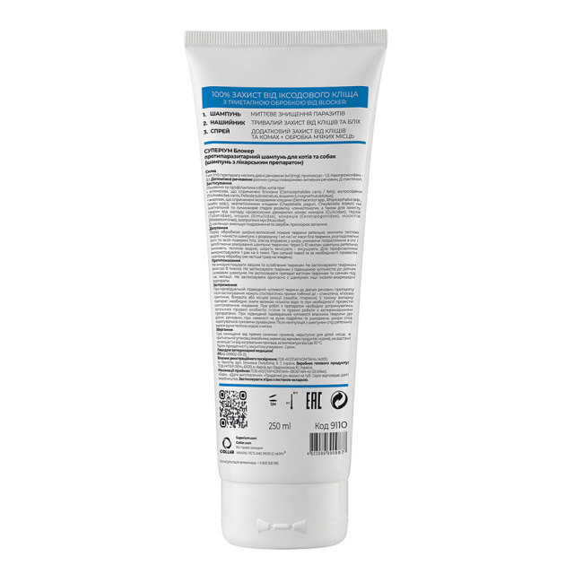 СУПЕРІУМ Блокер протипаразитарний шампунь для котів та собак. Миттєвий знищення іксодових кліщів та бліх.