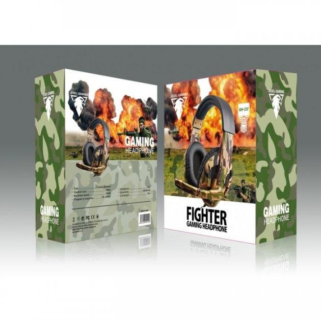 Дротові ігрові накладні навушники з мікрофоном Jedel GH-237 Gaming – це оригінальна ігрова гарнітура для комп'ютера з мікрофоном, від відомого бренду мобільної електроніки Jedel, з якісним звуком та стильним преміальним зовнішнім виглядом за доступну ціну. Ігрові накладні навушники GH-237 мають класний дизайн з камуфляжним розфарбуванням, закрите акустичне оформлення та ідеально підходять для активних ігор.